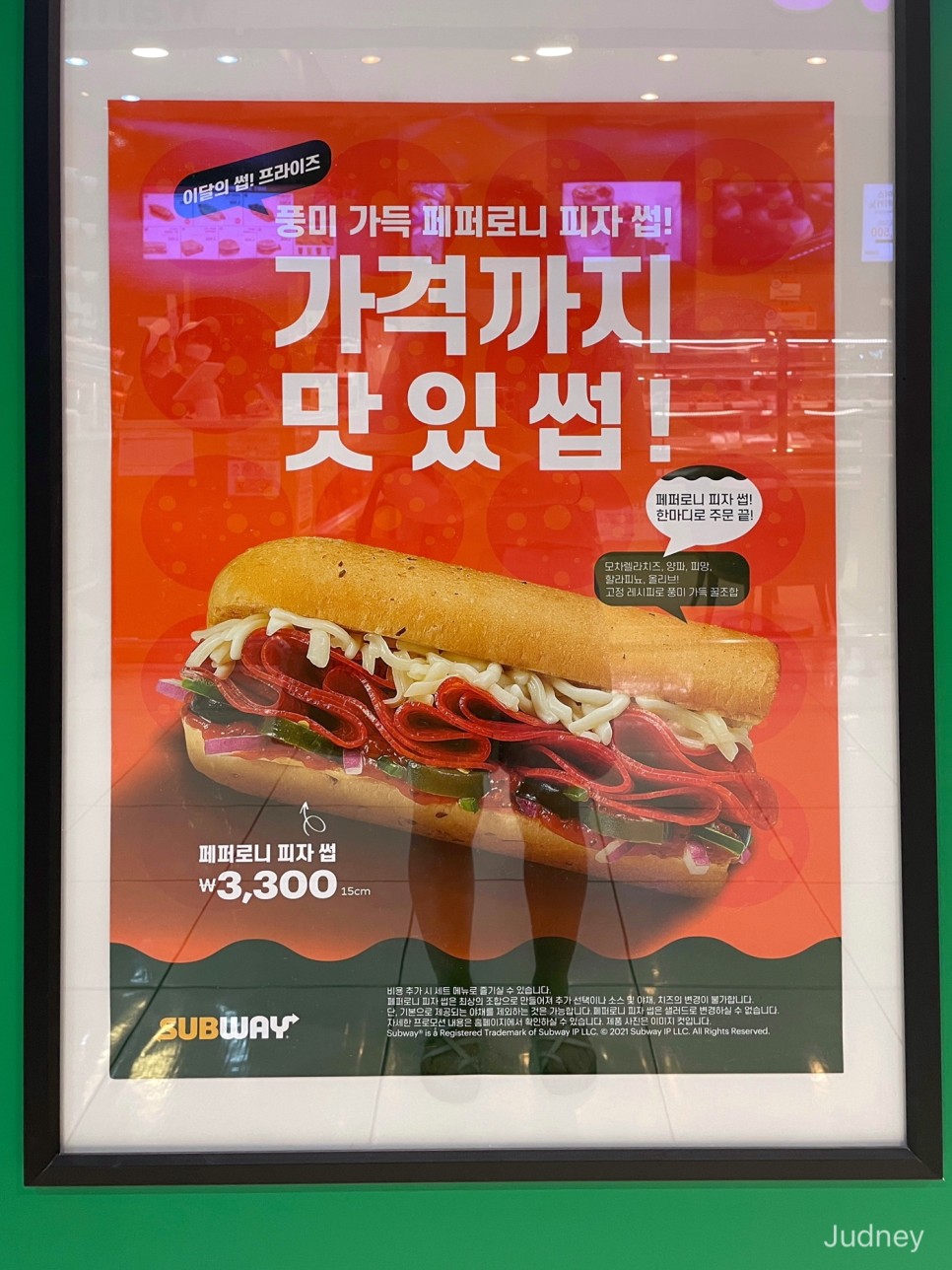 이번 7월 써브웨이 신메뉴인 페퍼로니 피자가 제일 색깔이 강렬하네요.