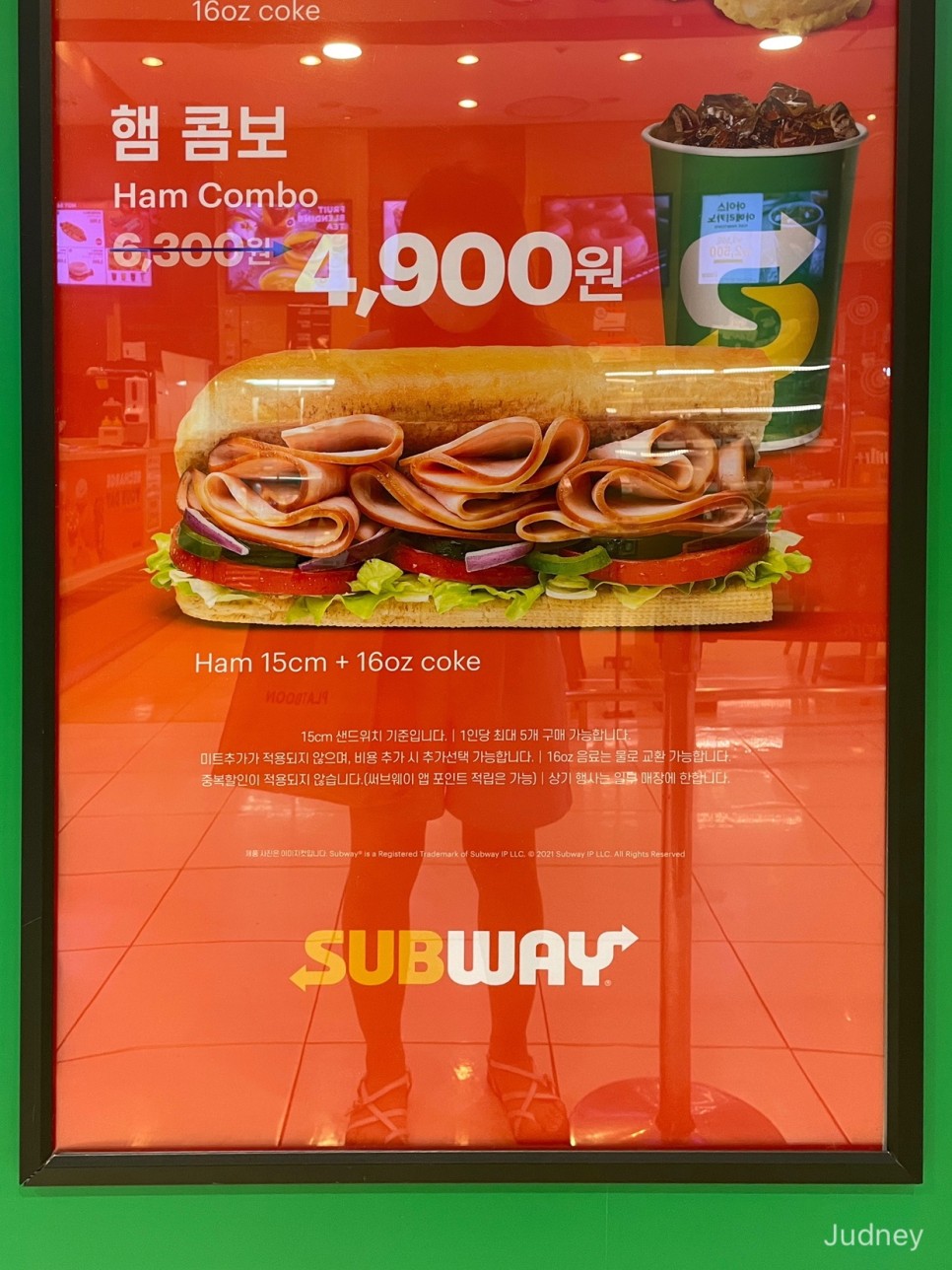 햄콤보 (햄 샌드위치 15cm + 음료수 1컵) 행사가 진행 중이에요. 6300원 → 4900원으로 할인중입니다. 7월 한정이라는 사실!